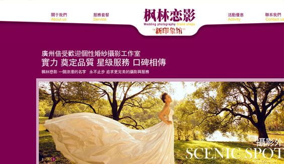楓林戀影是廣州知名的婚紗攝影工作室,一個(gè)在廣州婚紗攝影中擁有良好口碑的品牌,以化妝的精致、婚紗的個(gè)性與時(shí)尚、和與眾不同的拍攝方式,贏得每對(duì)新人的贊許,成為廣州婚紗攝影的倡導(dǎo)者。專業(yè)的服務(wù)團(tuán)隊(duì),一流的攝影設(shè)備,不管時(shí)尚、浪漫、古典、個(gè)性、唯美...楓林戀影的專業(yè)攝影師都能讓你獲得意外的驚喜。
