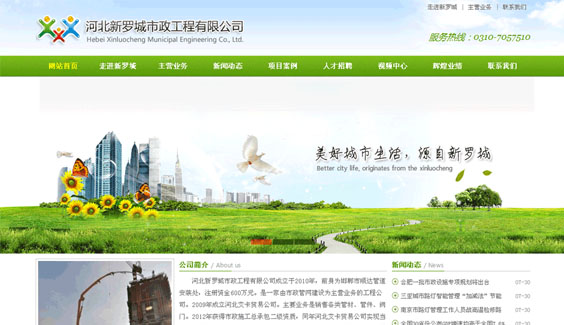 負責河北新羅城市政工程有限公司網站設計制作開發(fā)等網站建設服務,新羅城是以市政工程建設的現代化企業(yè),而城市建設更是以綠色和和諧為主,故網站設計以綠、藍為主題,突出綠色生命、注重環(huán)境保護、城市人文和和諧等主題,符合行業(yè)特點。