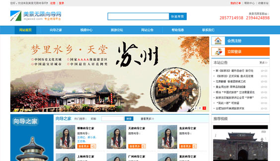 負(fù)責(zé)美景無(wú)限旅游行業(yè)網(wǎng)站的整站網(wǎng)站建設(shè)任務(wù),服務(wù)內(nèi)容包括:網(wǎng)頁(yè)設(shè)計(jì)、網(wǎng)頁(yè)制作、網(wǎng)站程序開(kāi)發(fā)等網(wǎng)站建設(shè)服務(wù),美景無(wú)限是以方便現(xiàn)代人旅游等為一體綜合旅游行業(yè)網(wǎng)站,故網(wǎng)站設(shè)計(jì)以藍(lán)色為主題,突出科技打造生活方便生活之意,以橙色為輔色系映衫年輕、活潑等對(duì)于新鮮事物的向往,也預(yù)示網(wǎng)站會(huì)走向更加美好的明天。