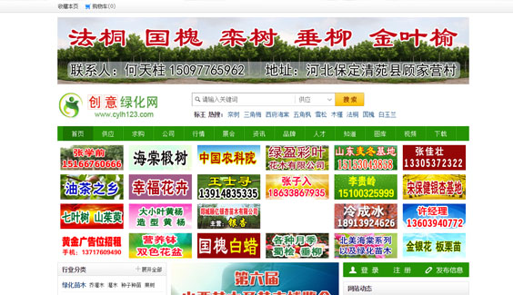 創(chuàng)藝綠化網(wǎng)是國(guó)內(nèi)較早的苗木花卉行業(yè)門戶網(wǎng)站,經(jīng)過多年的運(yùn)行和多次的改動(dòng),網(wǎng)站已發(fā)展成為框架完善、信息豐富、功能強(qiáng)大的電子商務(wù)服務(wù)平臺(tái),是園林、苗木、花卉、綠化行業(yè)的商業(yè)貿(mào)易門戶網(wǎng)站,目前已有全國(guó)各個(gè)省市的企業(yè)在本站注冊(cè)成為正式會(huì)員。