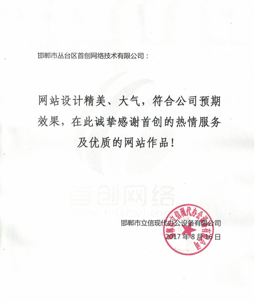 網(wǎng)站設(shè)計精美、大氣,符合公司預(yù)期效果,在此誠摯感謝首創(chuàng)的熱情服務(wù)及優(yōu)質(zhì)的網(wǎng)站作品!